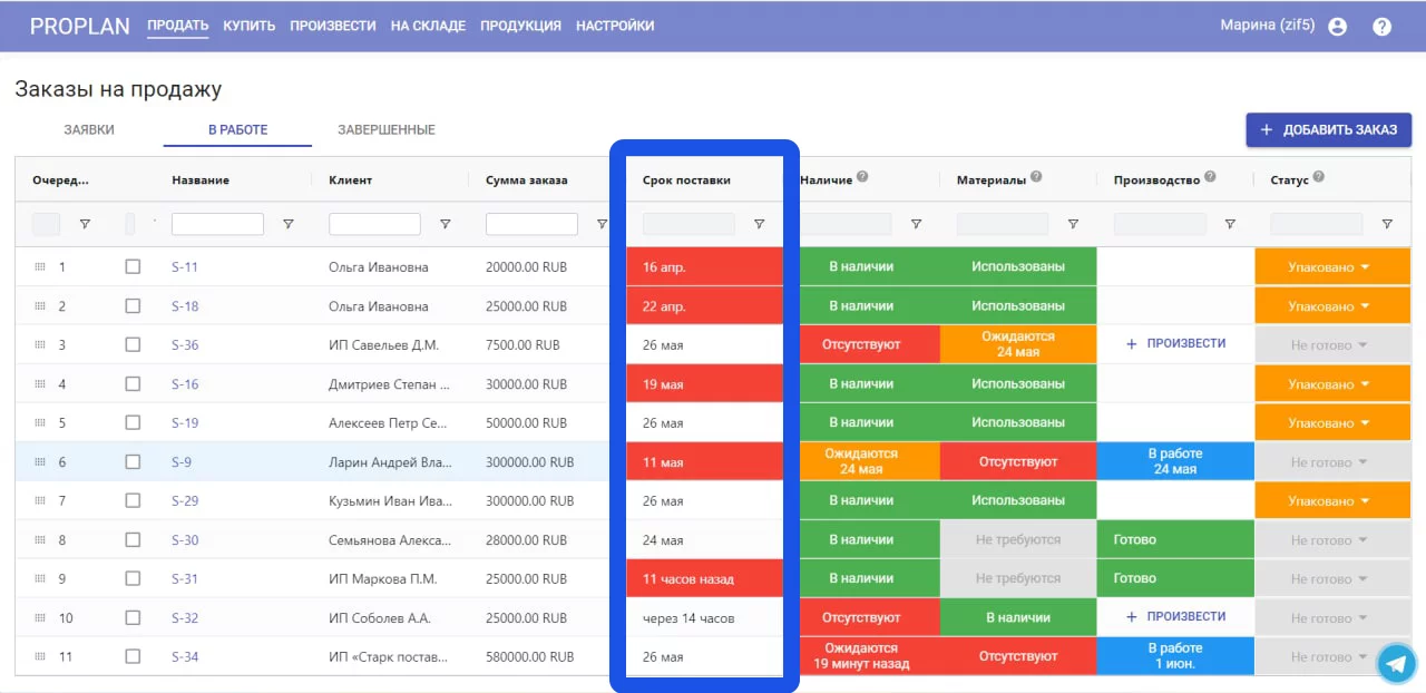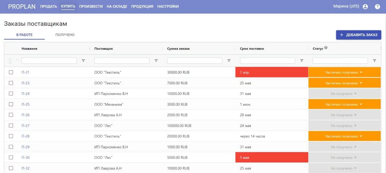 Система автоматически посчитает сроки отгрузки заказов с учетом доставки от поставщиков. Никаких самостоятельных подсчетов и нехватки материалов в последний момент.
